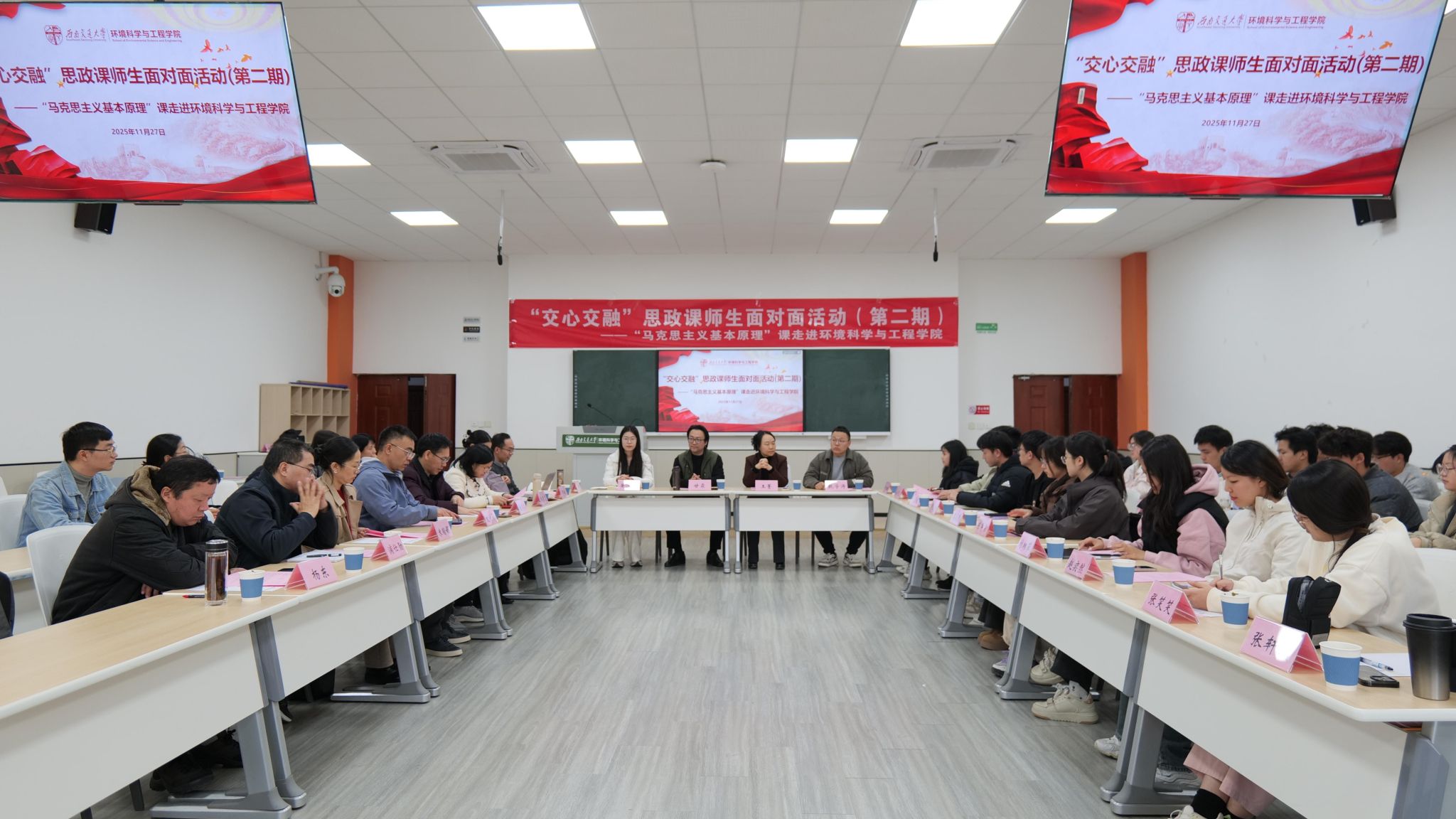 11月27日下午,马克思主义学院联合福利社 ,成功举办第二期“交心交融”思政课师生面对面活动。双方师生共聚一堂,将马克思主义基本原理课堂从“讲台”延伸至“面对面”,展开了一场有温度、有深度的思想对话。福利社 党委书记甘霖、马克思主义学院副院长王菁、马克思主义基本原理教研室颜军教授、罗敏副教授等全体教师,以及福利社 辅导员翟琦、赵瑞涵、黄泳桦与2023级、2024级30名学生代表共同参与。活动由马克思主义基本原理教研室党支部副书记甄学涛主持。...