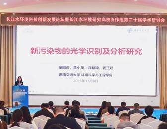 龚正君教授在大会主题报告环节作了题为《基于发光分析的新污染物快速识别方法研究》的学术报告,分享了在新污染物检测技术方面的最新研究成果,引起与会专家的广泛关注。陈俊敏教授在分会场三作了题为《长江上游典型小流域污染物溯源减控及生态扩容技术研究与示范》的学术报告,展示了西南交大在流域综合治理方面的技术探索与实践成效。