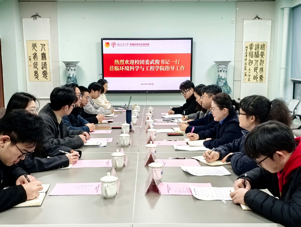 的共青团工作,他表示,学院团委工作思路清晰、体制健全、基础扎实,形成了一系列亮点成果。同时,他对学院共青团工作也提出了三点要求:一是抓好思想政治引领,围绕“青春环境”品牌工作体系,持续开展日常思想政治教育;二是擦亮社会实践品牌,打造有思想深度和学科特色的品牌实践项目;三是主攻科创大赛目标,争取在“国创赛”“挑战杯”等大型赛事中取得新的突破。
